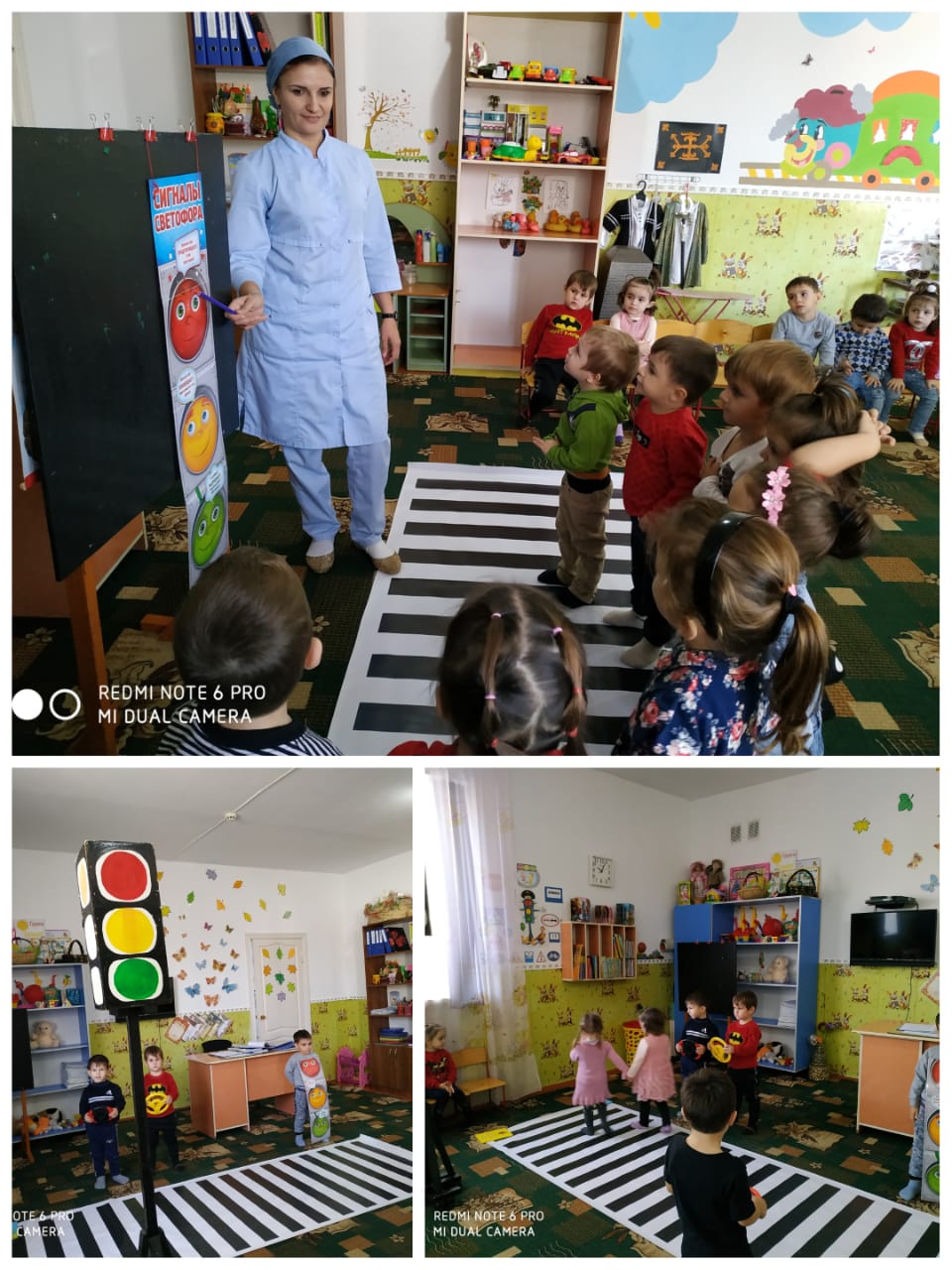 21.10.2019С целью закрепить представления детей о назначении светофора, о его сигналах, развивать внимание, зрительное восприятие; воспитать самостоятельность, быстроту реакции, смекалку во второй младшей группе "Солнышко" проведена дидактическая игра по ПДД «Живой Светофор».Воспитатель Элдерханова Х. М., раздав детям кружки зеленого, желтого, красного цветов, последовательно переключала светофор, а дети показывали соответствующие кружки и объясняли, что означает каждый из них.