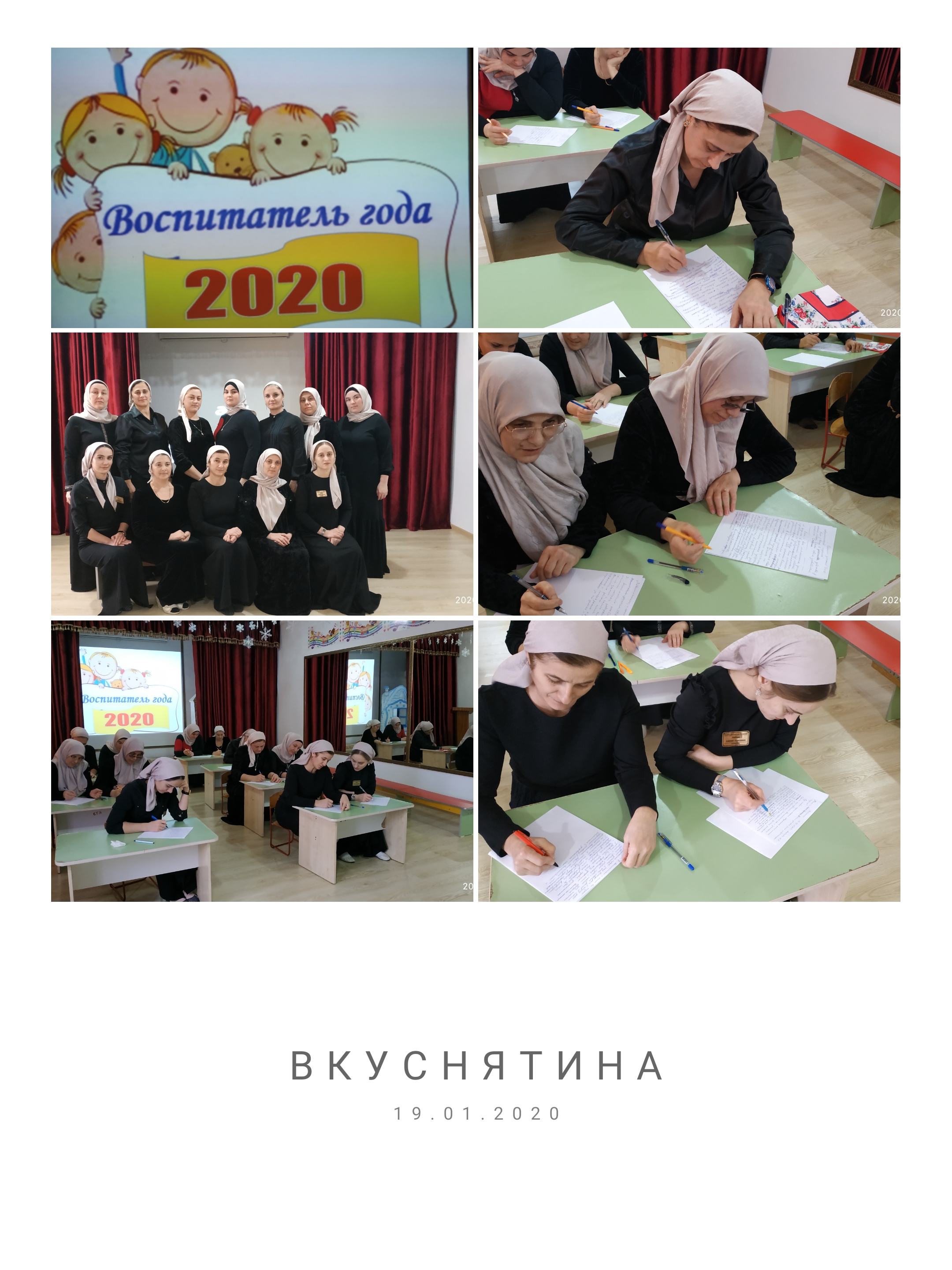 10.01.2020Состоялся 1 тур профессинального конкурса "Воспитатель года-2020" в МБДОУ "Детском саду "Седарчий. Первое конкурсное испытание «Сочинение». Участникам предлагалось порассуждать на тему «Я — современный воспитатель». Все 14 участников справились с заданием. А жюри еще только предстоит познакомиться с их творчеством. Всем желаем удачи!