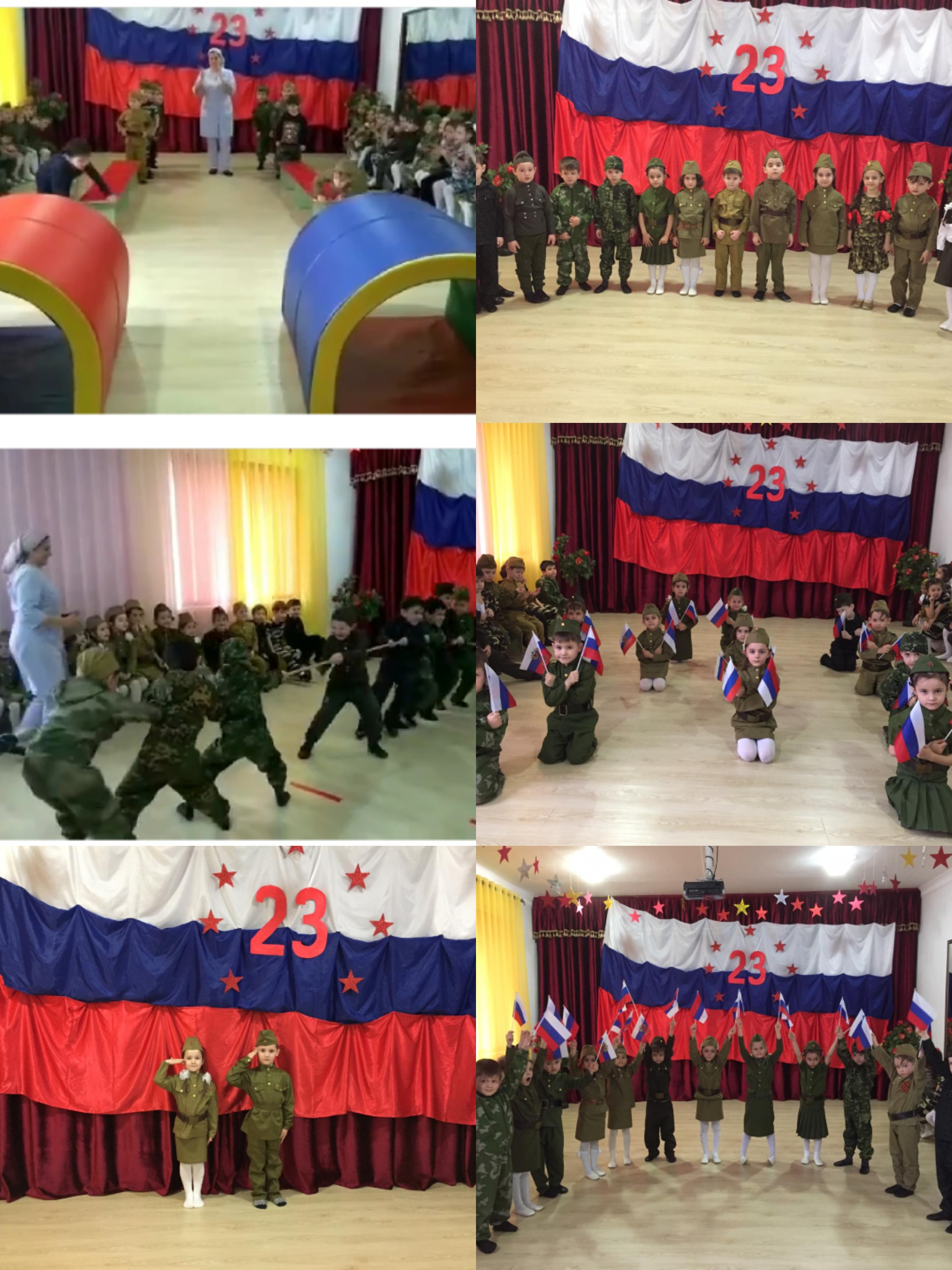 21.02.2020С целью познакомить детей с традицией празднования Дня защитника Отечества; закреплять знания о военных профессиях, названиях военной техники; совершенствовать координацию движений, формировать ловкость и меткость у детей; воспитать патриотические чувства: уважение к Российской Армии, любви к Родине, проведены мероприятия, посвященные празднованию 23 февраля. 20.02.2020 года проведены тематические беседы в группах «Защитники Родины». Так же в этот день с детишками средних и старших групп организована выставка «Вместе с папами». 21.02.2020 года проведен утренник, посвященный Дню защитника Отечества с детьми средних и старших групп «Мы скоро подрастем и в армию пойдем». Сегодня наши девочки выполнили свою задачу: поздравили будущих защитников Отечества стихами и песнями, а также подарили им открытки, сделанные своими руками.
