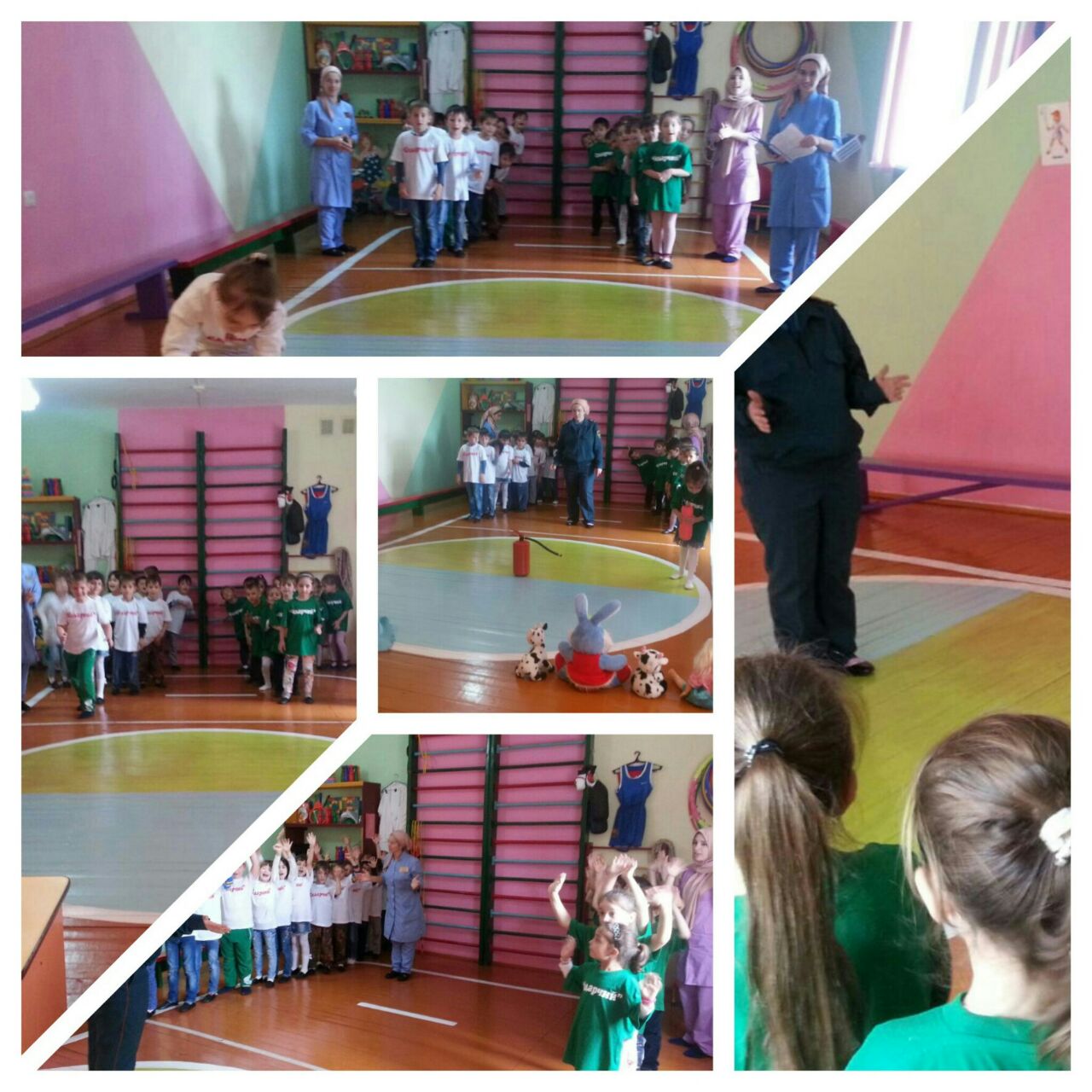 Спортивный праздник начался с беседы с детьми. Инструктор по физической культуре Данилханова П. Б. рассказала о пожарной безопасности и что случается, когда люди не соблюдают простые правила безопасности. Праздник продолжился приветствием команд «Огонек» и «Уголек». Дети из каждой команды выразительно рассказали стихи о пожарных, отгадали загадки, спели частушки, также показали свою ловкость, быстроту и находчивость в конкурсах: «Вызов пожарных», «Вопрос-ответ», «Отважные пожарные», «Потуши пожар», «Служба спасения», «Игра с огнетушителями».