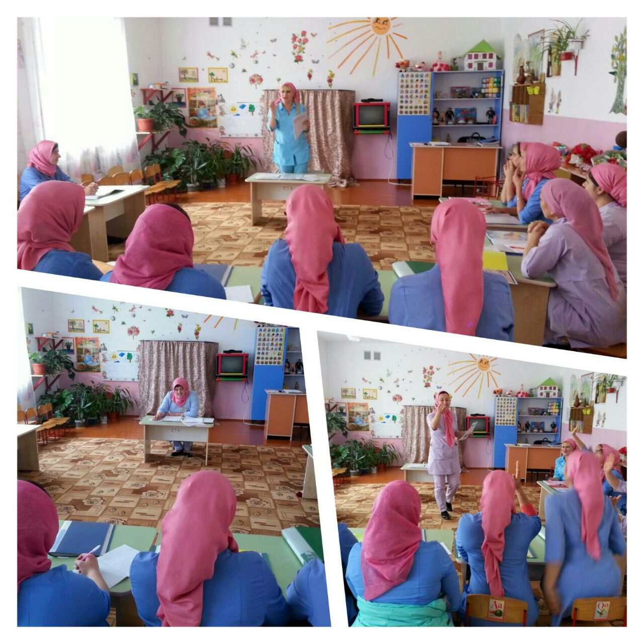 На педчасе старший воспитатель Вачаева Т.М. рассказала об интерактивных формах работы с родителями. Воспитатель Мункуева Х.М. выступила с сообщением "Для чего нужна игра детям". Воспитатель Саламова М.Х. провела педагогический тренинг на тему: "Оценка уровня коммуникабельности педагогов с родителями".