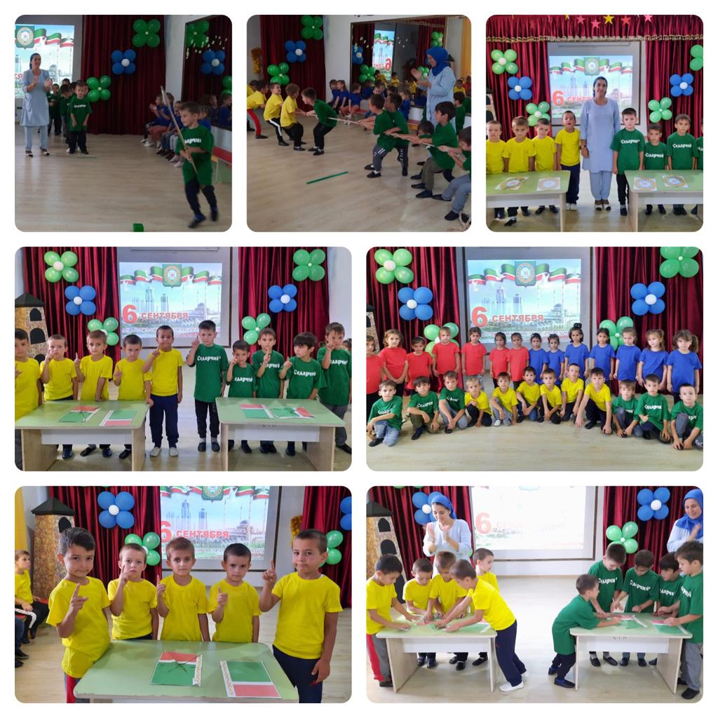 -06.09.2021г. с детьми старших и средних групп был организован спортивный досуг на чеченском языке. Дети рассказывали стихи о Чечне «Даймохк», «Беза, бовза хьайн Даймохк», «Нана – мохк», которые сопровождались беседой. Через игры закрепили знания о символиках Чеченской республики.Поиграли в стартовые игры с использование регионального компонента « Каде Турпалхой», «Т1ахъаьлла мехкарий», «Т1егулъе байракх», «Т1егулъе х1ост»,«Хьалаайба байракх», «Тхо деха Нохчийчохь», «К1адица ловзар» , «Б1остнехьа». По традиции завершили мероприятие чеченским зажигательным танцем.При организации и проведении мероприятия особое внимание уделено на гендерное воспитание дошкольников.