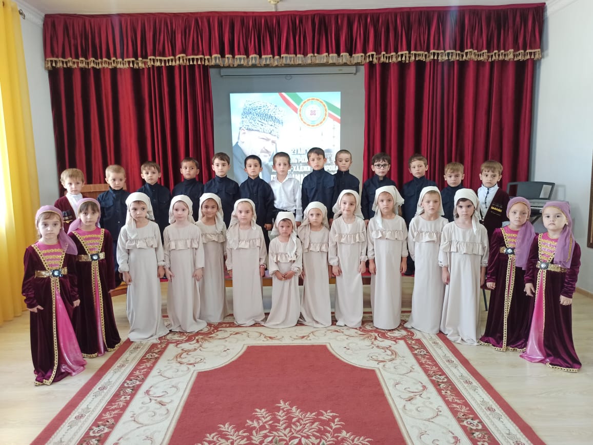 С воспитанниками всех возрастных групп проведены тематические занятия «Герой нашего времени». Воспитатели рассказали детям историю жизни Ахмат-Хаджи Кадырова, о том, как он пожертвовал своей жизнью ради процветания и возрождения Чеченской Республики, ради мира на родной земле.