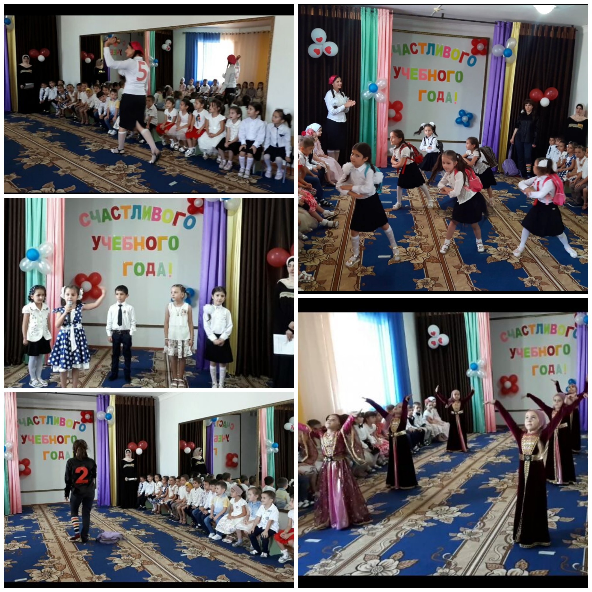 05.09.2017В связи с праздником Курбан-байрам в этом учебном году утренник ко Дню Знаний утренник проведен в детском саду «Седарчий» 5 сентября 2017г. Праздник «Книга Знаний» прошел очень весело и интересно. Детей порадовали своим присутствием Пятерка и Двойка. Для гостей детишки выразительно рассказали стишки, исполнили чеченский национальный танец и танец непослушания; спели разные песни «Улыбка», «Осень»; поиграли в игры «Детский сад-школа», «Согласны или нет?», «Цветочки»; отгадывали загадки. Наряду с развлечениями весь праздник внимание акцентировалось на то, как важно учиться в школе и учиться хорошо.