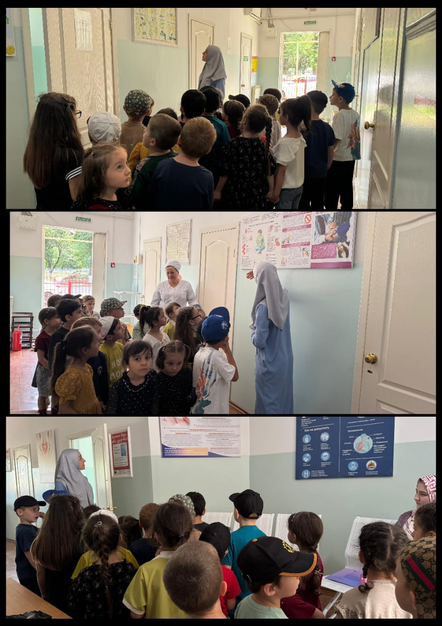 18.06.2025Сегодня воспитатель Саламханова Хеди с воспитанниками старшей группы "Теремок" провела экскурсию в амбулаторию. Там их встретили медсёстры. Они показали детям свои кабинеты, рассказали как ставить уколы, капельницы, какими приборами пользуется врач если болит горло. Ребята проявили огромный интерес к профессии врача, задавали множество вопросов и получили полезные советы по уходу за зубами, правильному питанию, регулярному медицинскому осмотру, о закаливающих процедурах и о пользе физкультуры. В ходе таких экскурсий у детей формируется чувство уважения к труду взрослых, сочувствие к больным, желание оказывать им помощь.