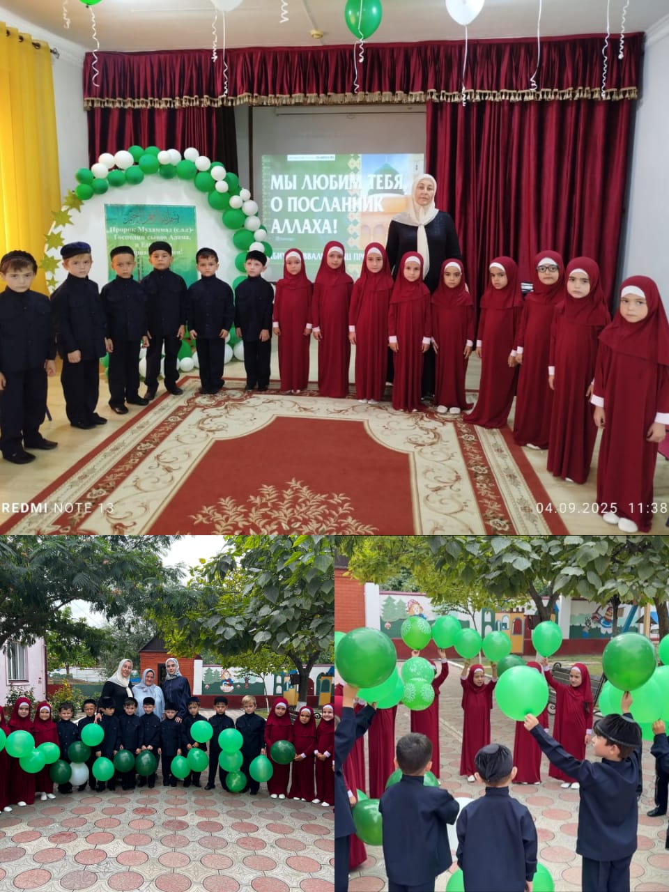 03.09.2025МБДОУ "Детский сад №7 "Седарчий" провели мероприятие "День рожденье пророка Муххамеда", в целях духовно-нравственного воспитания детей и воспитания любви к пророку и к его сунне. Лучший из всех – Пророк Мухаммад (с.а.в.). Если в сердце есть вера во Всевышнего, то в него вложена и любовь к Пророку Мухаммеду (с.а.в.). Эту любовь нельзя скрыть, особенно, когда наступает месяц Рабби-уль-авваль, в котором родился Пророк Мухаммед (с.а.в.). В нашем детском саду были проведены ряд мероприятий посвященных Пророку Мухаммаду («Да благословит его Аллах и приветствует»). Для младших дошколят проводились беседы о жизни пророка, а для воспитанников старших групп было проведено мероприятие с чтением хадисов и с исполнением нашида.