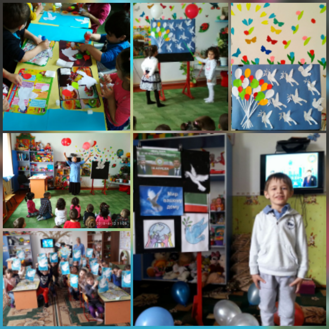 16.04.2018С 14 по 16 апреля 2018 года в МБДОУ «Детский сад «Седарчий» проведены мероприятия, посвященные Дню Мира. 14 апреля во всех возрастных группах проведены беседы о Мире «Мир на земле -это самое главное счастье», «Мир и толерантность». 15 апреля организована выставка детских работ. Детишки нарисовали и сделали аппликацию голубей как символа мира, гармонии, умиротворения. Воспитанники старшей группы «Солнышко» с помощью нетрадиционной техники рисования подготовили интересный коллективный рисунок к празднику. 16 апреля с воспитанниками средних и старших групп проведен утренник «Сделаем мир радужным».