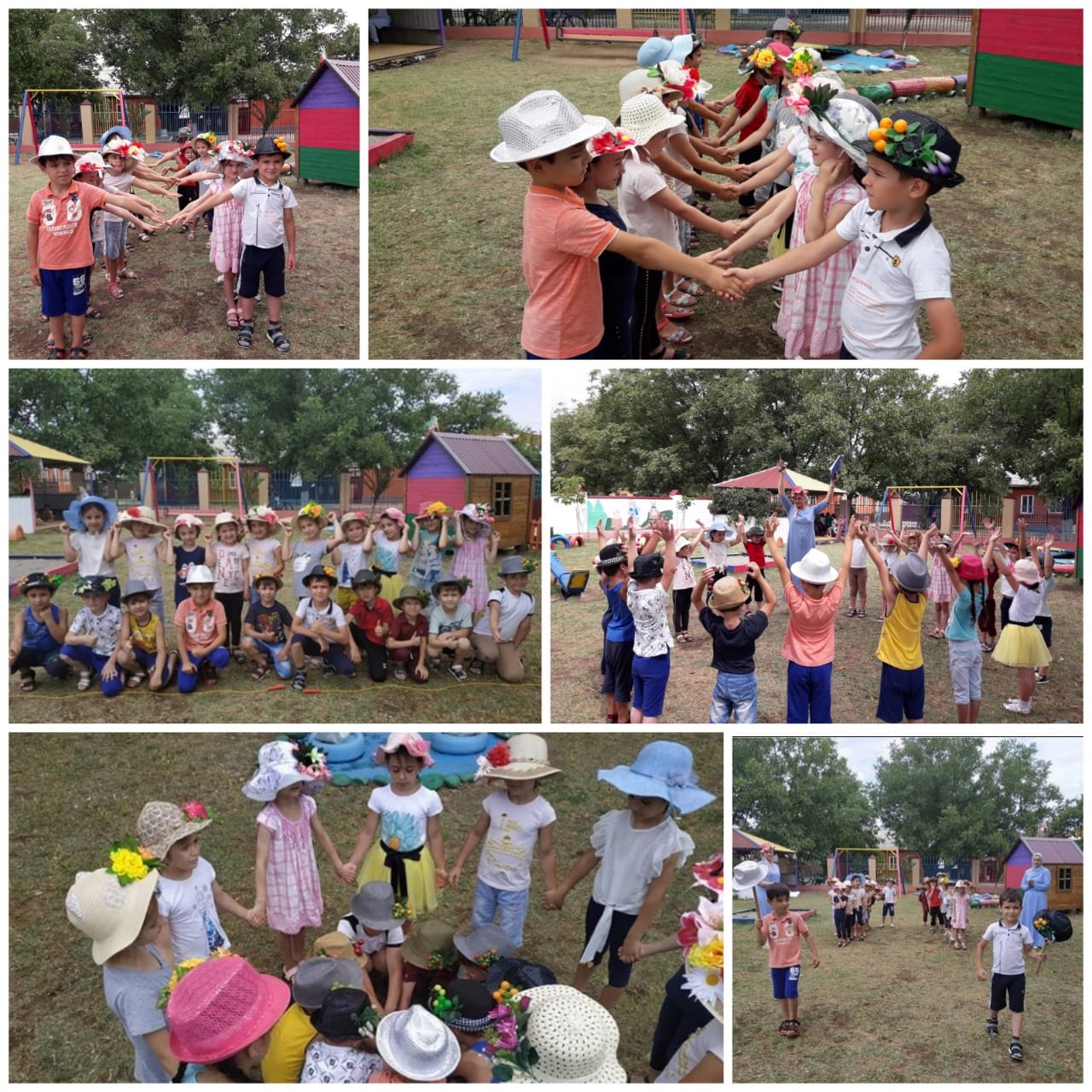 17.06.2019С целью создать у детей радостное и веселое настроение, развивать представление об истории головных уборов, об их назначении, в МБДОУ "Седарчий" проведено развлечение. Воспитатели Чимаева Д. Р., Саламова М. Х. и музыкальный руководитель Курбанова М. С-Э. организовали для детей старших групп «Радуга» и «Ромашка» развлечение «Дело в шляпе».В ходе развлечения дети читали стихи про шляпы, разгадывали загадки, участвовали в различных эстафетах со шляпами; поиграли в подвижные игры «Попади в шляпу», «Поймай игрушку шляпой». Провели интеллектуальный конкурс загадок. Поиграли в музыкальную игру «4 шага».
