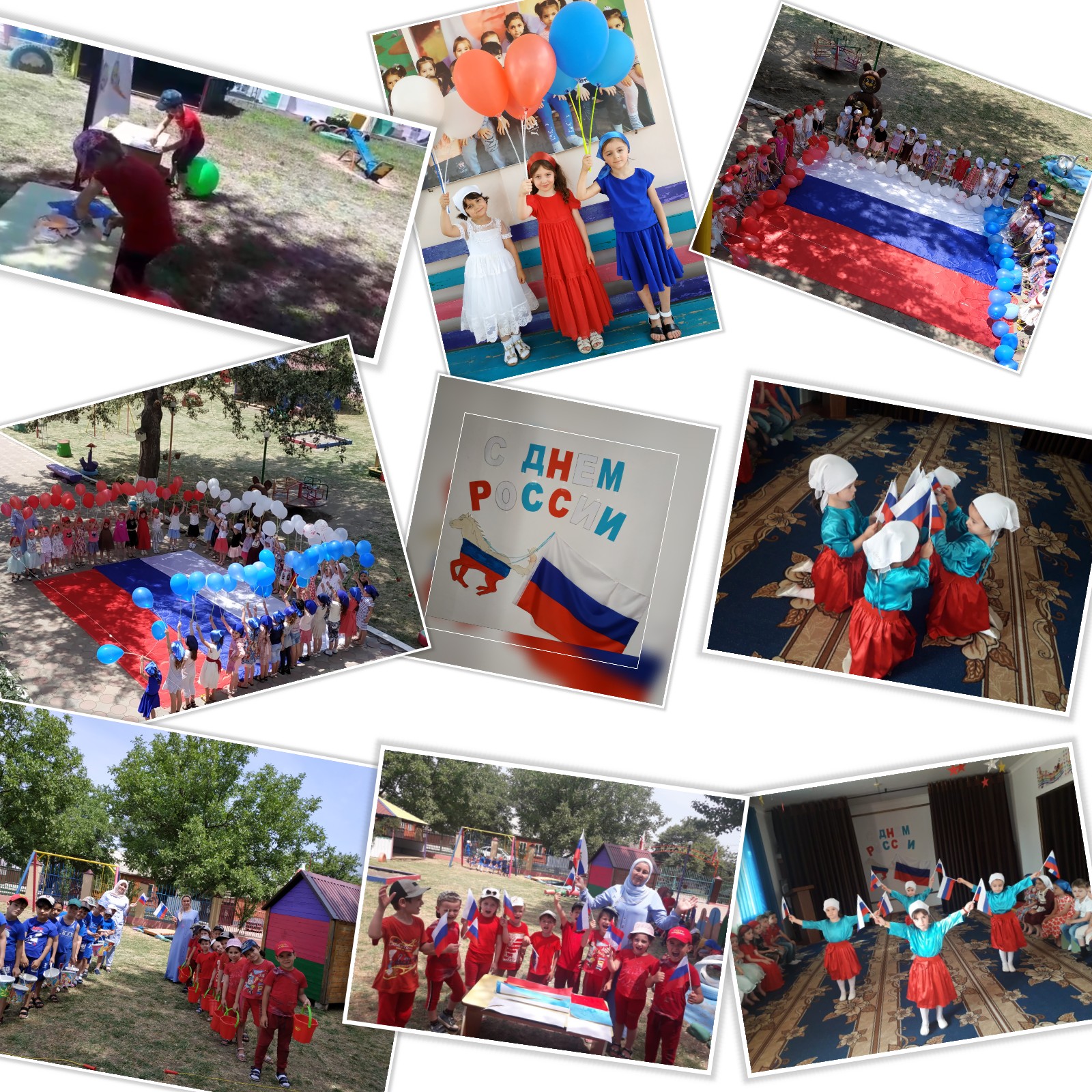 12.06.2019В детском саду с 10 по 12 июня 2019 года проведены мероприятия, посвященные Дню России. Во всех возрастных группах проведены тематические беседы на тему: «История и особенности праздника». В средних и старших группах проведены ООД по художественно-эстетическому воспитанию детей: рисование на тему «Государственная символика». Также проведено развлечение на улице с детьми средних и старших групп «День России с Василисой Премудрой»